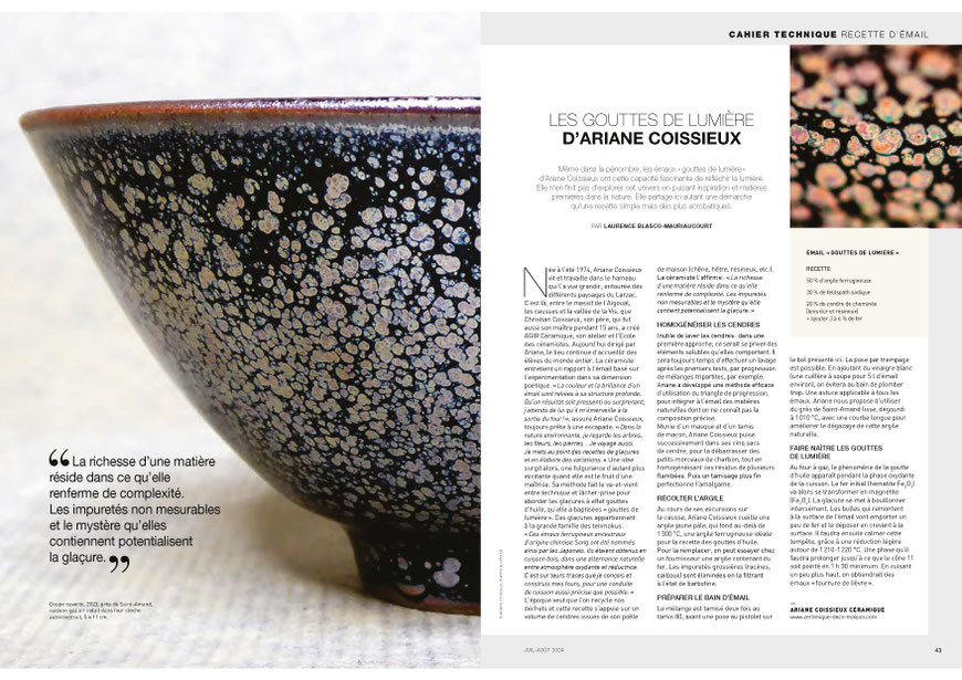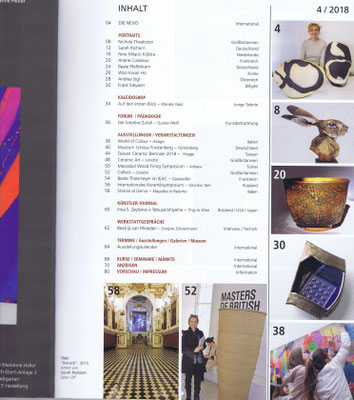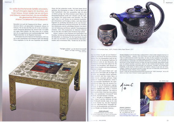 La revue céramique européenne consacre un portrait de 4 pages à Ariane Coissieux, rédigé par Doris Weilandt dans son numéro 4/18.