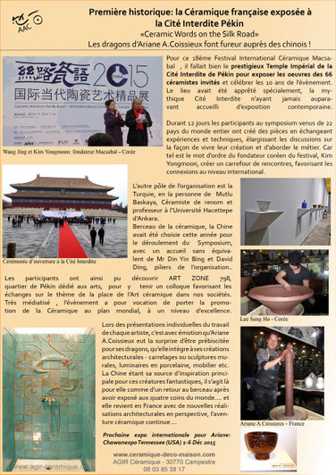 L'article écrit et documenté par Ariane pour le livre Macsabal Corée VII - en français et anglais - au sujet de l'exposition internationale à la Cité Interdite de Pékin (Chine) et le symposium de cuisson au bois 2015 auquel elle a participé.