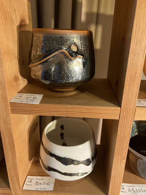 Entourés des Chawans et autres services à thé de Maîtres céramistes renommés du monde entier, je suis heureuse d'y présenter 5 Bols à Thé .